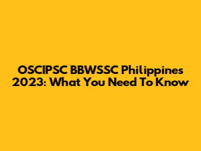 OSCIPSC BBWSSC Philippines 2023: What You Need To Know