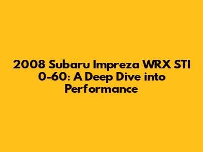 Hey guys, let's talk about a legend, the 2008 Subaru Impreza WRX STI! This car isn't just a car; it's a statement. A statement that screams performance, handling, and a whole lot of fun. One of the key metrics everyone looks at when judging a performance car is the 0 to 60 mph time. So, let's dive deep into the 2008 STI and see what makes it tick and how quickly it can hit that benchmark. Buckle up; it's going to be a fun ride!