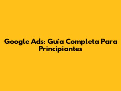 Google Ads: Guía Completa Para Principiantes