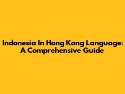 Indonesia In Hong Kong Language: A Comprehensive Guide