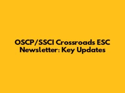 OSCP/SSCI Crossroads ESC Newsletter: Key Updates