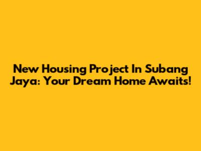 New Housing Project In Subang Jaya: Your Dream Home Awaits!