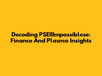 Decoding PSEIIImpossiblese: Finance And Plasma Insights