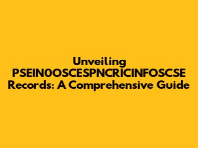 Unveiling PSEIN0OSCESPNCRICINFOSCSE Records: A Comprehensive Guide