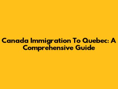 Canada Immigration To Quebec: A Comprehensive Guide