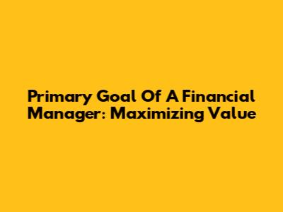 Primary Goal Of A Financial Manager: Maximizing Value
