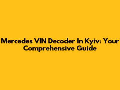 Mercedes VIN Decoder In Kyiv: Your Comprehensive Guide