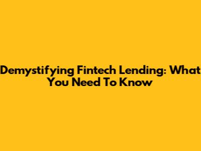 Demystifying Fintech Lending: What You Need To Know