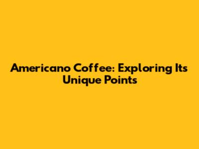 Americano Coffee: Exploring Its Unique Points
