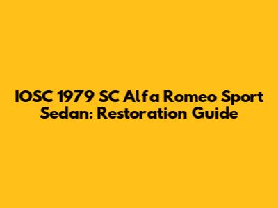 IOSC 1979 SC Alfa Romeo Sport Sedan: Restoration Guide
