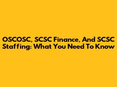 OSCOSC, SCSC Finance, And SCSC Staffing: What You Need To Know