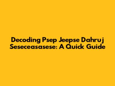 Decoding Psep Jeepse Dahruj Seseceasasese: A Quick Guide