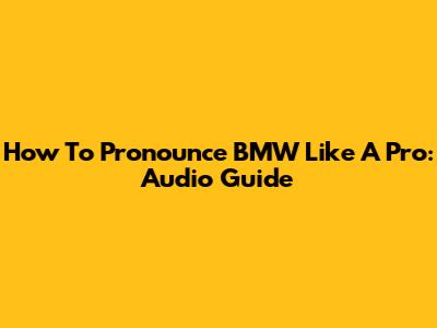 How To Pronounce BMW Like A Pro: Audio Guide
