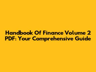 Handbook Of Finance Volume 2 PDF: Your Comprehensive Guide