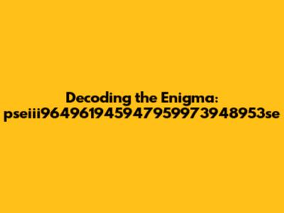 Let's dive deep into the cryptic realm of "pseiii964961945947959973948953se." What could this string of characters possibly mean? Well, sometimes, seemingly random sequences hold hidden keys, codes, or even inside jokes. Think of it like this: have you ever stumbled upon a password that looks like a toddler mashed their hands on a keyboard? Yet, to the owner, it’s a secure and memorable phrase. This exploration aims to unpack potential meanings, contexts, and usages behind this unique identifier.