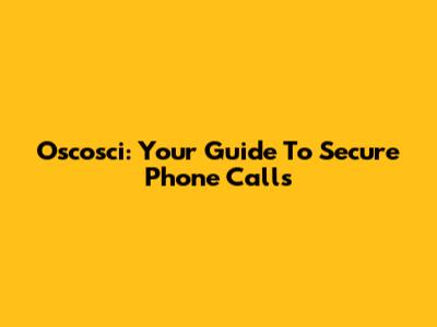 Oscosci: Your Guide To Secure Phone Calls