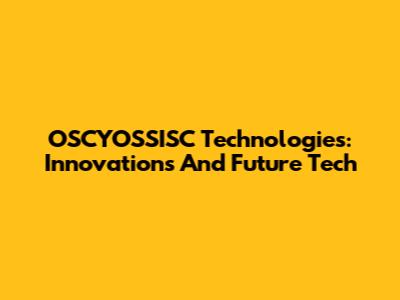OSCYOSSISC Technologies: Innovations And Future Tech