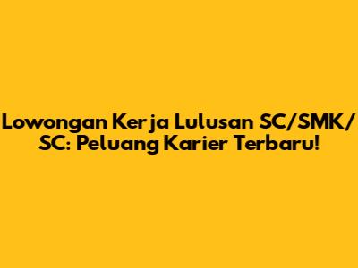 Lowongan Kerja Lulusan SC/SMK/SC: Peluang Karier Terbaru!