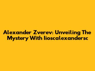 Alexander Zverev: Unveiling The Mystery With Iioscalexandersc