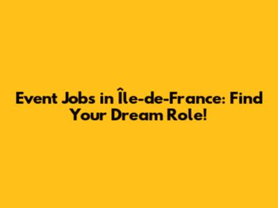 Event Jobs In Île-de-France: Find Your Dream Role!