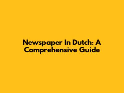 Newspaper In Dutch: A Comprehensive Guide