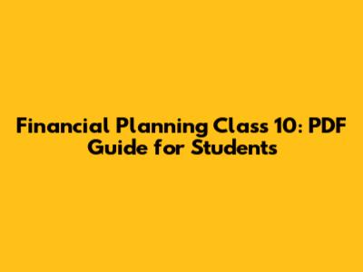 Where to Find Reliable Financial Planning PDFs for Class 10
