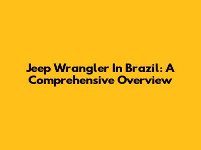 Jeep Wrangler In Brazil: A Comprehensive Overview
