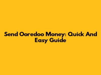 Send Ooredoo Money: Quick And Easy Guide