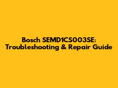 Bosch SEMD1CS003SE: Troubleshooting & Repair Guide