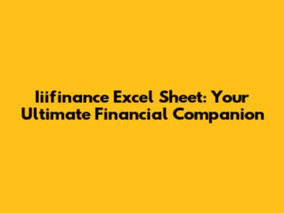 Iiifinance Excel Sheet: Your Ultimate Financial Companion