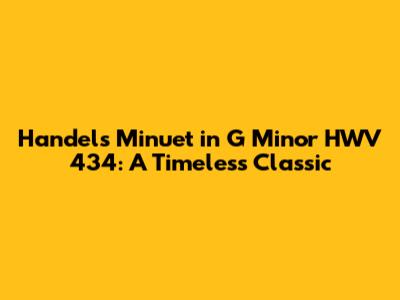 Hey music lovers! Today, we're diving deep into one of the most recognizable and beloved pieces of classical music: Handel's Minuet in G Minor HWV 434. This isn't just some dusty old tune; it's a vibrant, elegant, and surprisingly versatile piece that has captivated audiences for centuries. Whether you're a seasoned classical music aficionado or just starting to explore the genre, this minuet has something to offer. Let's unwrap its history, analyze its charm, and discover why it continues to resonate with so many people.