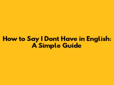 The Basic Phrase: "I Don't Have"