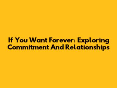 If You Want Forever: Exploring Commitment And Relationships