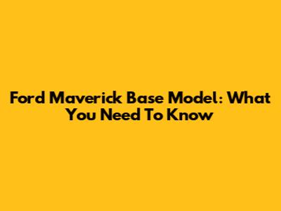 Ford Maverick Base Model: What You Need To Know