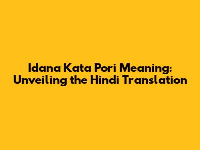 Idana Kata Pori Meaning: Unveiling The Hindi Translation