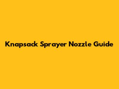 Knapsack Sprayer Nozzle Guide