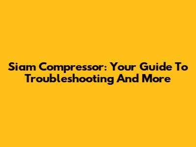 Siam Compressor: Your Guide To Troubleshooting And More