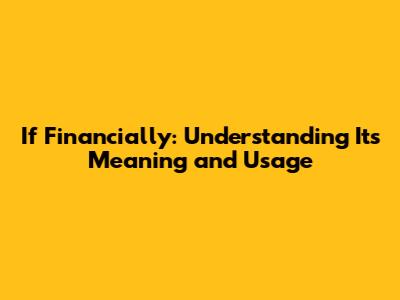 Hey guys! Ever stumbled upon the phrase "if financially" and felt a tiny bit unsure about what it really means? No worries, you're definitely not alone! This phrase pops up in all sorts of conversations, from casual chats to more serious discussions about money matters. So, let’s break it down and get a solid grip on what "if financially" is all about. Think of this as your friendly guide to understanding and using this phrase like a pro.