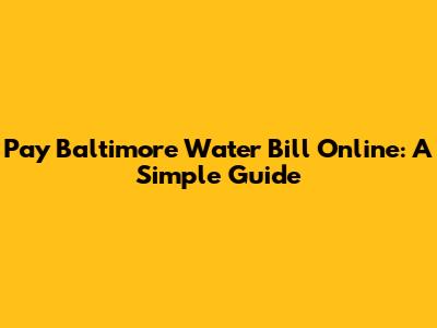 Pay Baltimore Water Bill Online: A Simple Guide