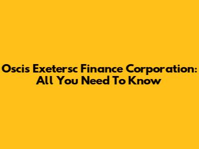 Oscis Exetersc Finance Corporation: All You Need To Know