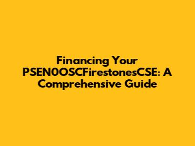 Financing Your PSEN0OSCFirestonesCSE: A Comprehensive Guide