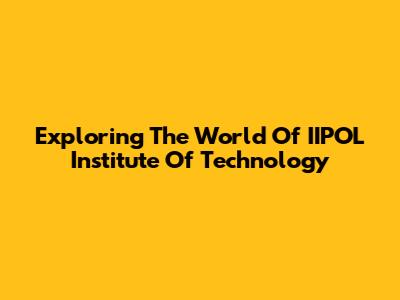 Exploring The World Of IIPOL Institute Of Technology