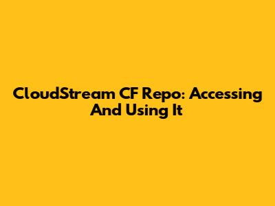 CloudStream CF Repo: Accessing And Using It