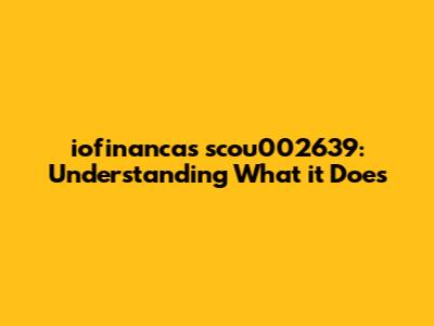 Why iofinancas scou002639 Matters: Real-World Applications