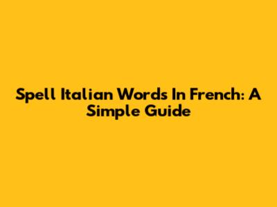 Spell Italian Words In French: A Simple Guide
