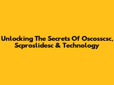 Unlocking The Secrets Of Oscosscsc, Scproslidesc & Technology