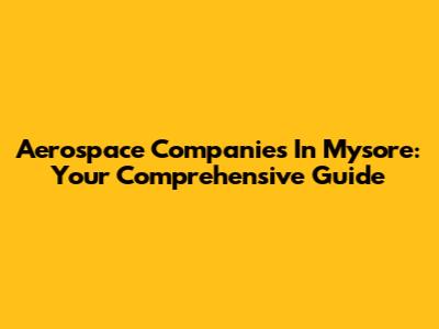 Aerospace Companies In Mysore: Your Comprehensive Guide