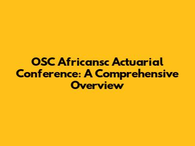 OSC Africansc Actuarial Conference: A Comprehensive Overview
