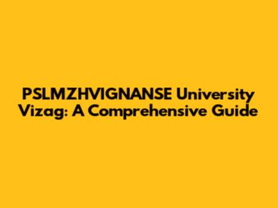 PSLMZHVIGNANSE University Vizag: A Comprehensive Guide