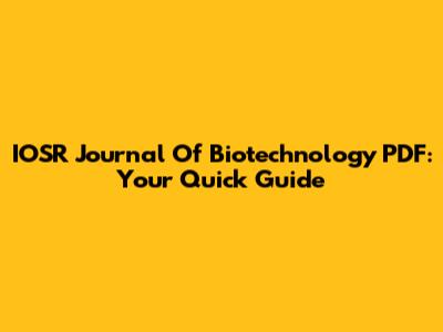 IOSR Journal Of Biotechnology PDF: Your Quick Guide
